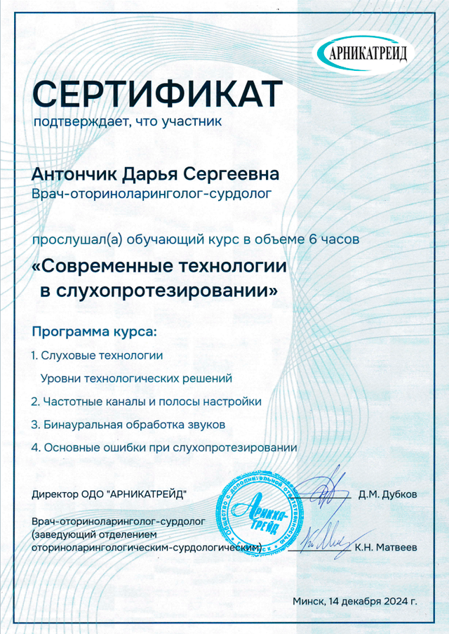Ведет прием: «Центр хорошего слуха» г. Минск, ул. Воронянского, 40