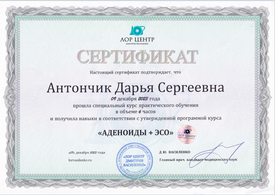 2024 гг. и по настоящее время — врач сурдолог-оториноларинголог в медицинском центре «Центр хорошего слуха».