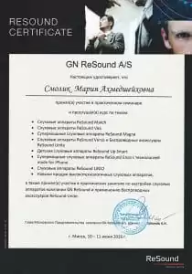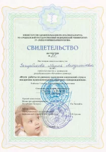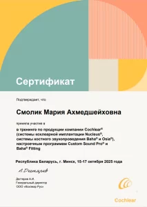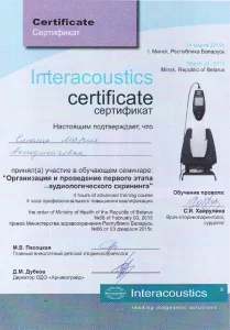 2017 г. — Повышение квалификации по программе «Аудиология, сурдология», ГУО «БелМАПО».