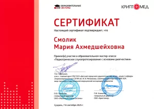 2011 г. — Повышение квалификации по программе «Детская оториноларингология», ГУО «БелМАПО».