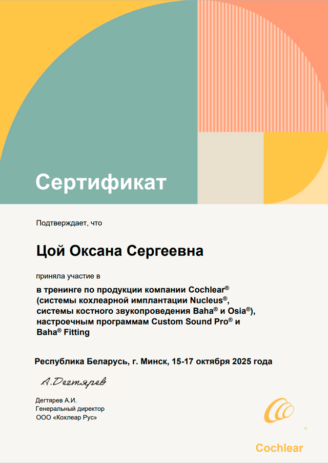 Выполняет диагностику и коррекцию нарушений слуха с использованием современных цифровых технологий слухопротезирования.