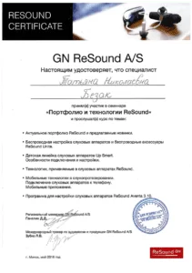 2019 г. — Курсы повышения квалификации по программе «Диагностика и лечение нарушений слуховой функции при патологии уха», ГУО «БелМАПО».
