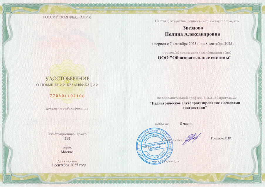 2024 г. — настоящее время Медицинский центр «Центр хорошего слуха».